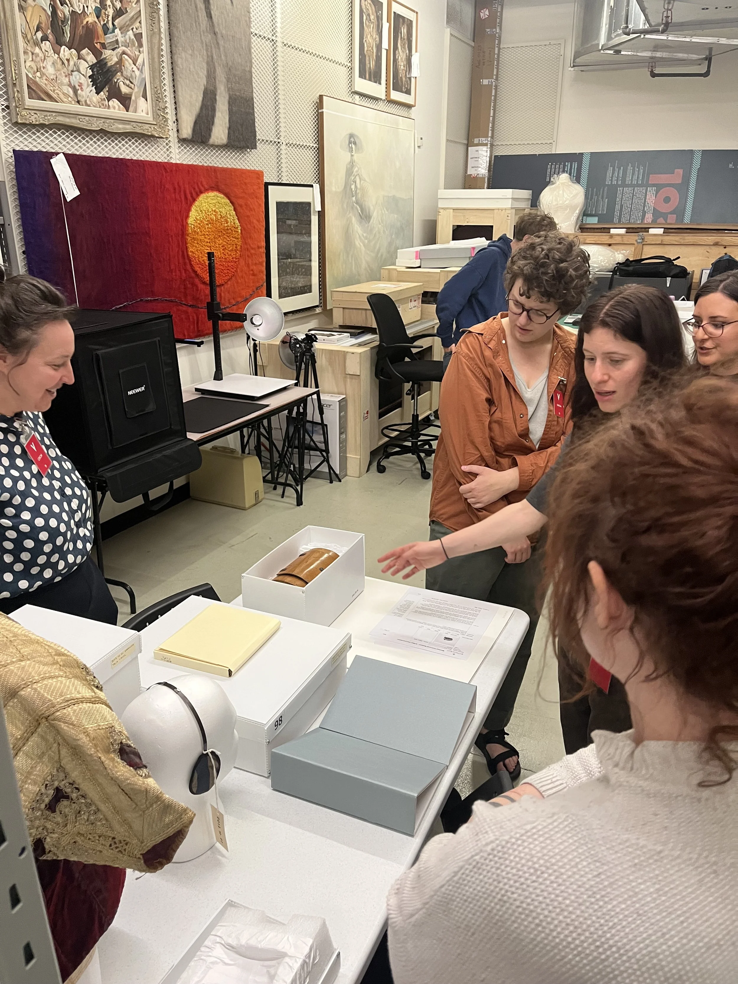 Our Archives team recently took the opportunity to tour the Montreal Holocaust Museum’s offsite location at the Museum Collections Centre. Registrar and Acquisitions Manager Carel Khoury and Museum Technician Sara Juneau had thoughtfully selected highlight items relevant to our own collections, and generously explained to us many of the tricks they had developed in creating custom housing for priceless items. It’s always a pleasure to visit with other professionals in our field to discuss common challenges and innovative solutions!