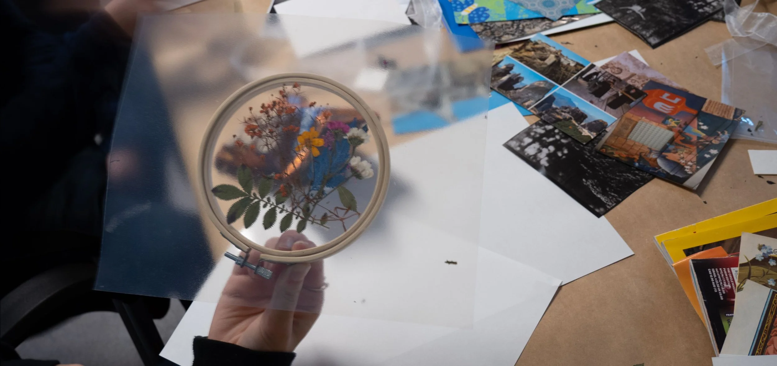 A pressed flower craft made by a young JPL patron at our most recent special Tuesday night event, September 30, 2025.