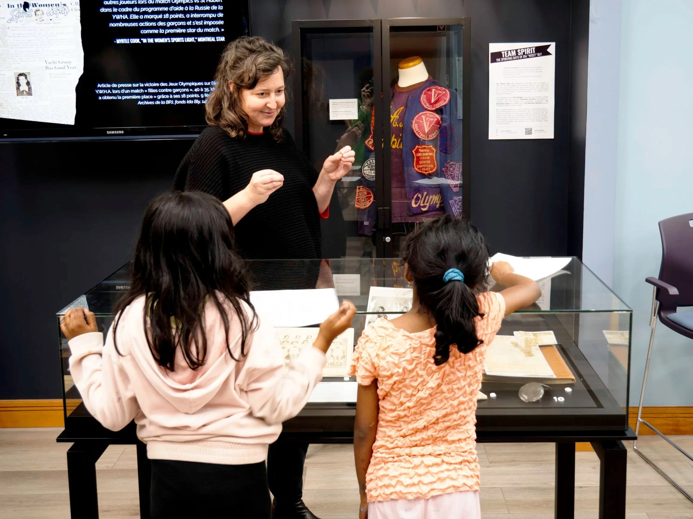 The finissage of the Ida Bly exhibition was a beautiful celebration of a remarkable woman. It took place the same evening as two youth events, which meant that while parents and their children were packing up their crafts and taking out books, there was a convergence of children learning about women’s sports history in Montreal alongside the daughters of our star athlete, now in their 80s. These kinds of moments are why archival outreach is so meaningful for us.